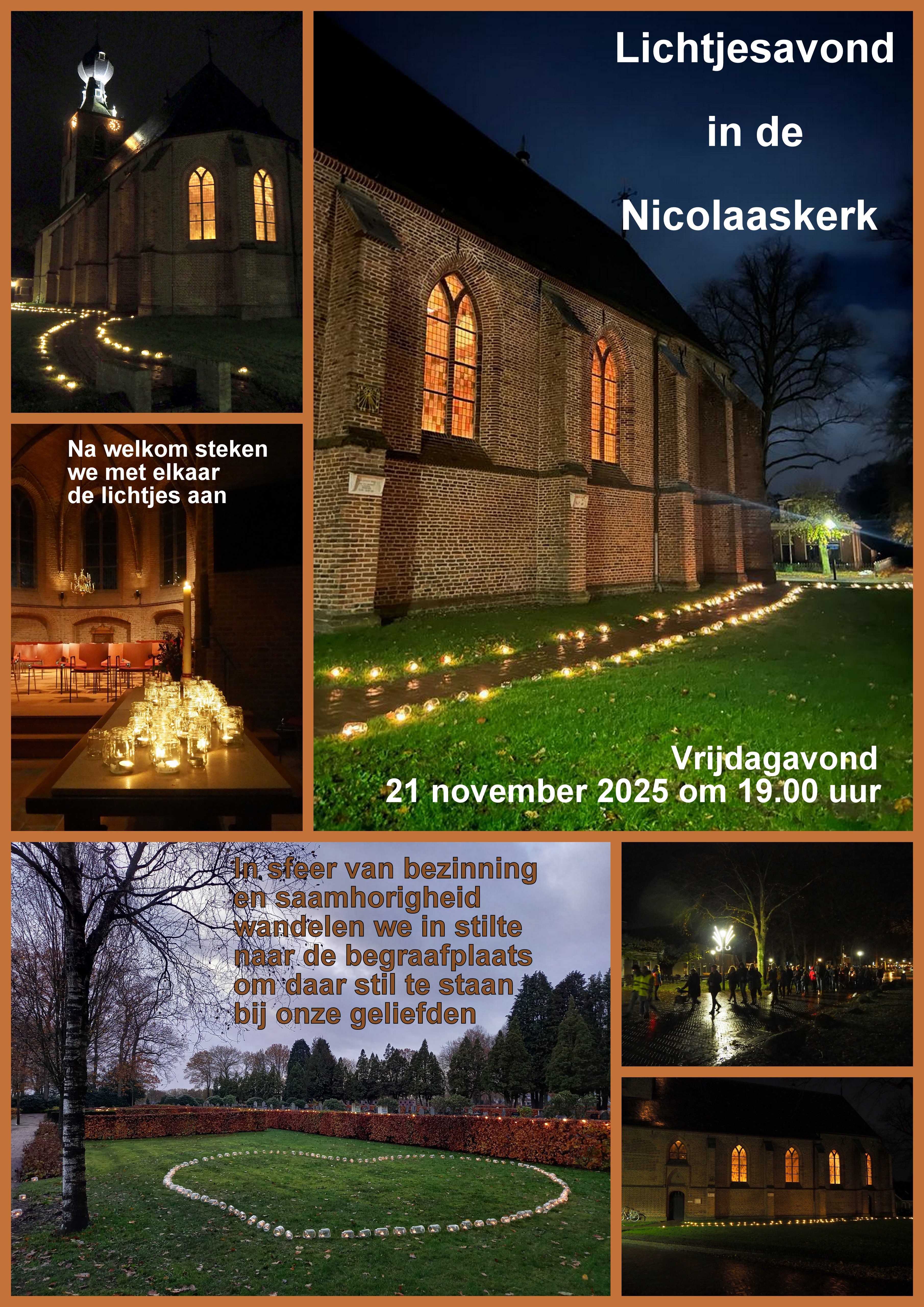 Op vrijdag 21 november in de Nicolaaskerk in Dwingeloo bent u van harte welkom bij de jaarlijkse lichtjesavond. De avond begint om 19.00 uur.