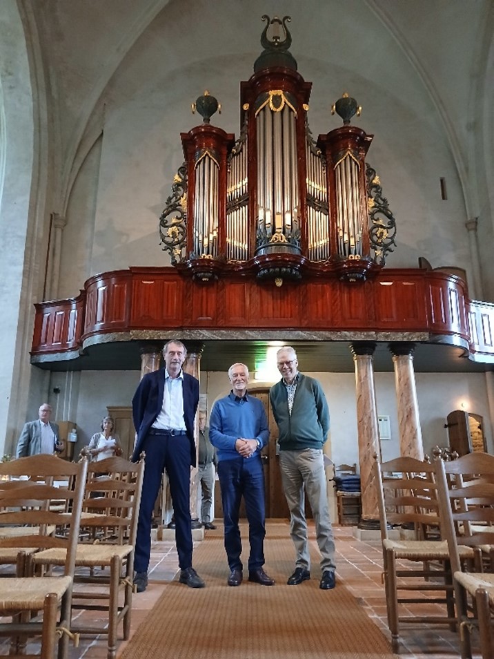 Op zondagmiddag 12 oktober vond een bijzondere eredienst plaats in de historische Pancratiuskerk te Diever. Dit was ter gelegenheid van drie jubilarissen; Harro Kraal, Geert Jan Pottjewijd en Jans Vrieling; de drie vaste organisten van de Hervormde Gemeente Diever-Dwingeloo (PKN). Zij verzorgen al jarenlang de orgelbegeleiding van gemeentezang en cantorij, geven prachtige muzikale intermezzo’s en leveren bijdragen aan bijzondere diensten. Zij zijn het die de monumentale orgels, het van Oeckelen-orgel (uit 1882) in de Pancratiuskerk en het Van Gelder-orgel (uit 1886) in de Dwingelse Nicolaaskerk tot leven weten te brengen met hun sprankelende en soms betoverende orgelspel.Daar zij alle drie al meer dan 50 (!!) jaar het kerkorgel bespelen, werden zij tijdens deze feestelijke middagdienst gezamenlijk in het zonnetje gezet. Ook met dit organistenjubileum konden de aanwezigen genieten van hun muzikale talenten en luisteren naar een door hen zelf uitgekozen muziekstuk. Zo vertolkte Harro Kraal de Aria uit de Goldbergvariaties (BWV 988) en enkele variaties daarop. Jans Vrieling bracht de eerste delen van een Andante in D-dur van Felix Mendelsohn Bartoldy ten gehore. En Geertjan Pottjewijd besloot deze feestelijke viering met Fuga in D van Christian Friedrich Ruppe en de vrolijke Verjaarsmarsch van Hendrik Pieter Steenhuis. Na het in ontvangst nemen van alle welgemeende felicitaties (naast bloemen, wijn en oorkondes), beklom collega organist Andries Kamphof het orgel en zette het magnifieke lied “Het Gebed” van DC Lewis in, met vocale bijdrage van ds. Daan Bargerbos. Een mooi eerbetoon en prachtig sluitstuk van deze gedenkwaardige herfstmiddag! Op de foto: Geert Jan Pottjewijd, Harro Kraal en Jans Vrieling (v.l.n.r.) onder het van Oeckelenorgel in de Dieverse Pancratiuskerk. ------------------------------------------------------------------------------- Drie ambtsdragers namen afscheid na een lange staat van dienst en een nieuwe ambtsdrager werd verwelkomd. Zondag 7 september 2025 werd van 3 ambtsdragers afscheid genomen, te weten, Greet Oosterveld, Thom Oosterloo en Roelof Bolding. Alle drie hadden een lange staat van dienst binnen de voorheen hervormde gemeenten Diever en Dwingeloo. Ze werden zowel tijdens de dienst als na de dienst toegesproken door ds. Daan Bargerbos en de voorzitter van de kerkenraad, Riemie Godeschalk-Dijkstra. Dhr. Peter Klapwijk werd bevestigd tot kerkvoogd.Vele kerkgangers schudden de afscheid nemende ambtsdragers en de nieuw komende ambtsdrager de hand. Greet Oosterveld Ds, Daan Bargerbos noemde Greet onder andere een vrouw met het hart op de goede plek, die zich inzet voor de medemens die dat nodig heeft. Ze doet dat met een luisterend oor en met een vaardige hand en daarbij zien we altijd een groot enthousiasme. “De afgelopen tijd heb je aan den lijve gemerkt, dat het ook goed is om aan jezelf te denken en jezelf niet voorbij te lopen. Er breekt nu een tijd aan, waarin je meer tijd voor jezelf en voor anderen krijgt. Het is je van harte gegund”, aldus ds. Daan Bargerbos. Voorzitter Riemie Godeschalk-Dijkstra ging in op het ambt als ouderling. Greet heeft samen met mede ouderlingen veel georganiseerd, zoals de bezoekronde aan jongere gemeenteleden van 30+, wat leidde tot de vorming van een gespreksgroep 30+, de stiltehoek in de kerk van Diever, de Aswoensdagviering, de preek van de leek, de kloosterweekenden, bezoekwerk en als lid bij de werkgroep ‘bezinning en inspiratie’, van waaruit veel activiteiten worden georganiseerd, ook voor mensen van buiten de kerk. Ook is ze daarnaast nog koster. “Jouw toewijding en inzet wordt zeer gewaardeerd en daarvoor willen wij je heel erg bedanken”, aldus voorzitter Riemie. Thom Oosterloo Ds. Daan Bargerbos gaf aan dat Thom al heel lang geleden voor het eerst werd gevraagd om als diaken mee te doen. Dat heb je altijd trouwhartig gedaan, je was rustig en bescheiden aanwezig, maar als het nodig was met een duidelijke mening. “Voor jou staat de ander centraal, de mens die hulp nodig heeft en het mooist vond je dan ook als je iets kon weggeven aan mensen die dat goed konden gebruiken. De contacten met diverse gemeenteleden zullen zeker blijven, maar we zullen je aanwezigheid in de kerk en in vergaderingen ook zeker gaan missen. Het ga je goed”. Voorzitter Riemie vertelde dat Thom een deel van zijn diaken-periodes ook de financiën heeft beheerd en dat hij in een tijd dat er een groot tekort was aan kerkenraadsleden zich weer heeft aangemeld om zich weer in te zetten voor de kerk. Ook Thom is een tijdlang koster geweest. En, wij hebben vele jaren genoten van de kerstbomen die je aan de kerk schonk, soms zo groot dat de kerk te klein was. “Beste Thom, je was een stille kracht maar hebt met plezier en inzet je ambt vervult. Wij bedanken jou hiervoor”, aldus de voorzitter. Roelof BoldingDs. Daan Bargerbos: “Roelof, jij neemt na vele intensieve jaren afscheid als ouderling-kerkrentmeester. Ik vermoed dat er niemand hier in de kerk is, die jou niet kent. Met een onvermoeibaar enthousiasme ben je aanwezig op diverse fronten. Je kennis van de geschiedenis van hervormd Dwingeloo is enorm. Jou heb ik al leren kennen tijdens de beroepingsperiode, waar jij als voorzitter van de beroepingscommissie met groot enthousiasme en met kennis van zaken de hele rit begeleidde. Als voorzitter van de kerkrentmeesters was je ook nauw betrokken bij de verbouwing van deze Nicolaaskerk. Maar een van de belangrijkste feiten is voor jouzelf, dat we als hervormde gemeenten Diever en Dwingeloo zijn gefuseerd tot één hervormde gemeente Diever-Dwingeloo. Jouw werk als ambtsdrager komt nu tot een eind. Er breekt hopelijk een tijd aan waarin je met meer rust van alles kunt doen, samen met Elly, met jullie kinderen en kleinkinderen. En hopelijk blijf je enthousiast aanwezig in al die andere bezigheden, die niet perse verbonden zijn aan het werk van de kerkrentmeesters. Het ga je goed”, aldus ds. Daan Bargerbos. Voorzitter Riemie tot Roelof: 