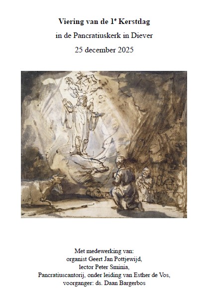 Donderdag 25 december 2025 om 10:00 uurKerstmorgen ds. Daan Bargerbos, Pancratiuskerk DieverVoorganger(s): ds. Daan Bargerbos Organist: Geert Jan Pottjewijd |